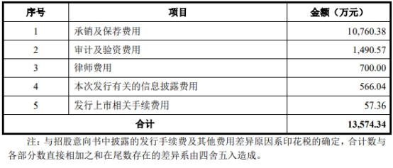 思科瑞本次发行费用总额为13,574.34万元(发行费用均为不含税金额),其中,中国银河证券股份有限公司获得承销及保荐费用10,760.38万元。