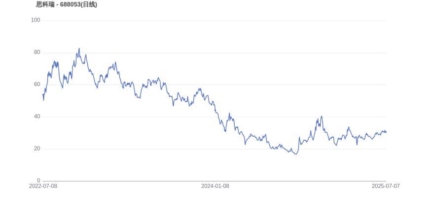 思科瑞自2022年7月8日上市至今,已迎来3周年。从上市首日收盘价为53.8元、市值53.80亿元,到如今市值达到30.48亿元,思科瑞的成长轨迹充满波折,更是经历了从盈利到亏损的转变,但从最近几年公司经营表现来看,业绩持续下滑令人担忧。