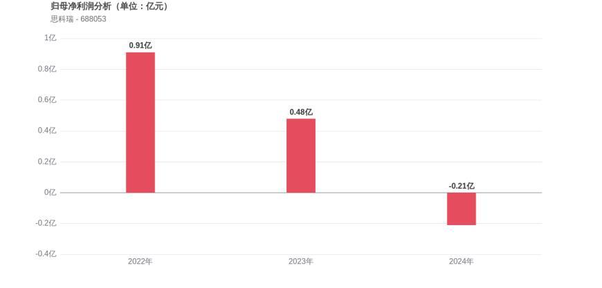 利润角度分析,2022年思科瑞实现归母净利润0.91亿元,2024年为-0.21亿元。公司利润表现急剧恶化,从盈利转为亏损。