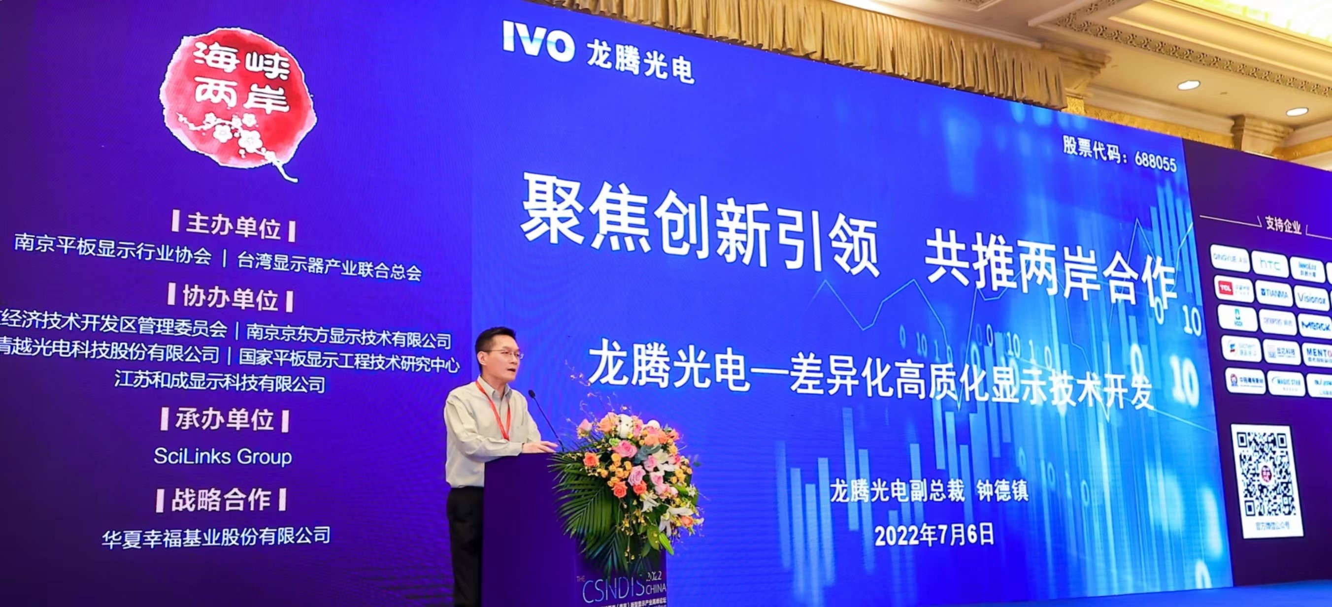 7月6日上午,“2022第九届海峡两岸(南京)新型显示产业高峰论坛”在南京隆重召开,昆山龙腾光电股份有限公司作为新型显示产业链链主企业受邀参加,蔡志承董事副总裁、钟德镇副总裁、殷琦副总经理代表龙腾光电出席本次活动,钟德镇副总裁在大会上发表精彩演讲。龙腾光电是国内最早成立的显示面板研发、制造和销售的高新技术企业之一,产品主要应用于笔记本电脑、车载、手机、工控、智慧互联等显示终端,于2020年8月登陆上交所科创板,是科创板显示面板上市第一股,已入选上证指数及上证380指数,并被首批列入上证科创板新一代信息技术指数。该论坛作为新型显示领域前沿技术和先进材料、设备的风向标和业内交流合作的平台,自2013年以来成功举办了九届,对新型显示技术和产业的最新发展态势进行深入的分析和探讨,并为产业链上下游的对接提供平台。