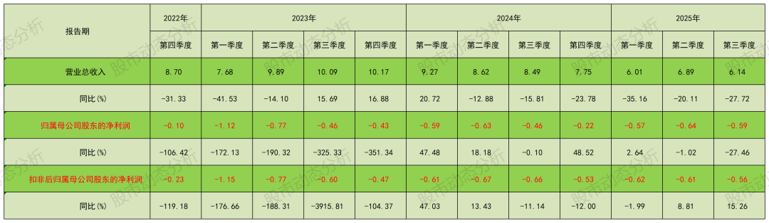 从2022年四季度一直到2025年三季度,一共12个季度,龙腾光电就没有再盈利过。(见表格)