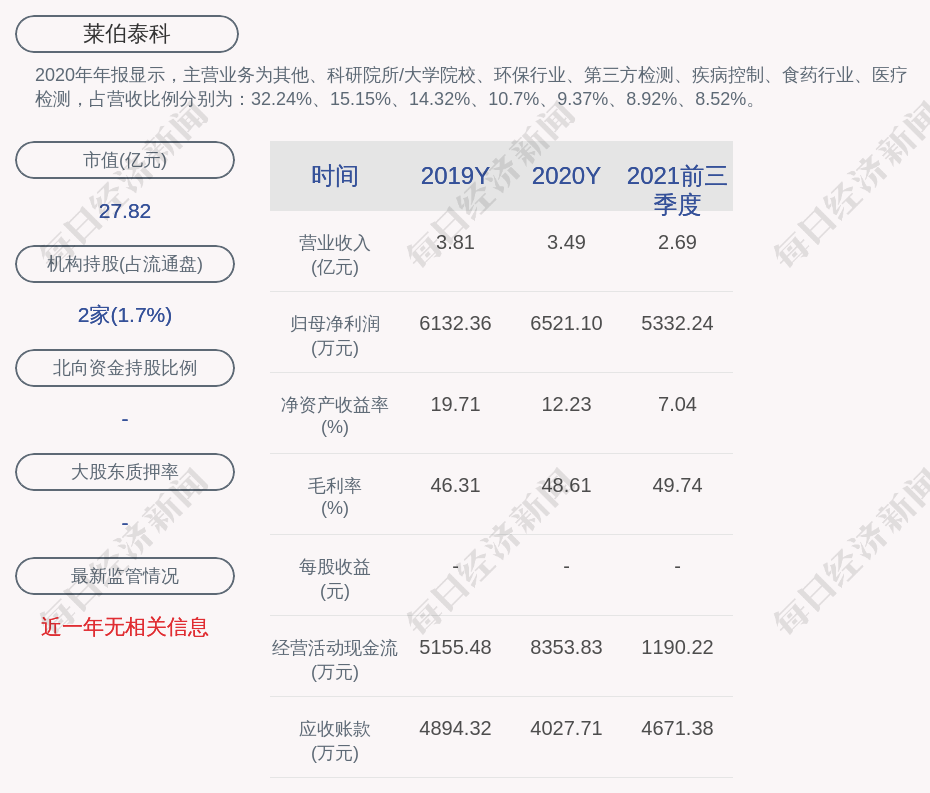 1.近30日内无机构对莱伯泰科进行调研。更多关键信息,请搜索“道达号”。