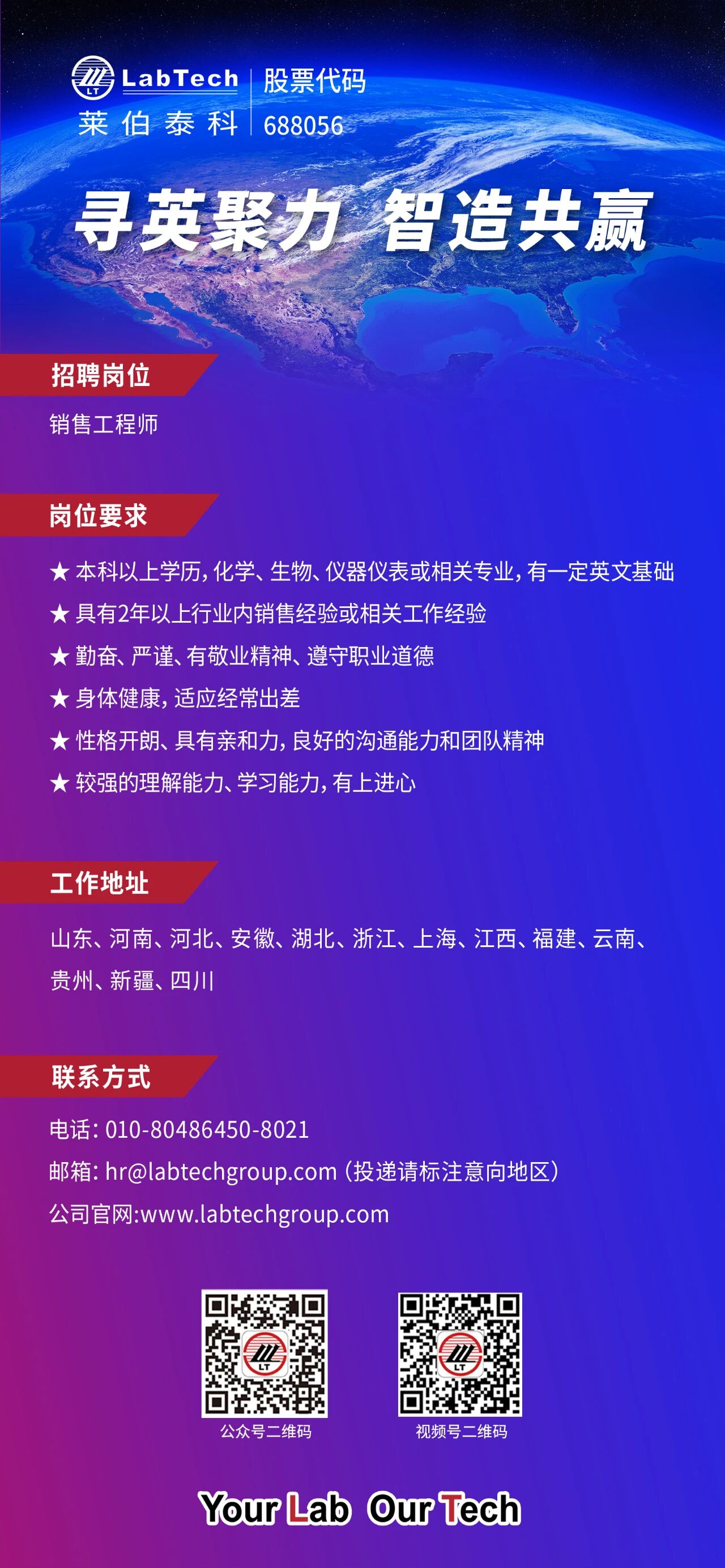 莱伯泰科全国招聘计划正式开启,拟在 13 个省份公开招聘销售工程师。此次招聘紧密围绕公司“中国科学仪器全链制造者”核心定位,为全链智造战略扩张储备骨干力量,助力高端科学仪器国产替代进程。