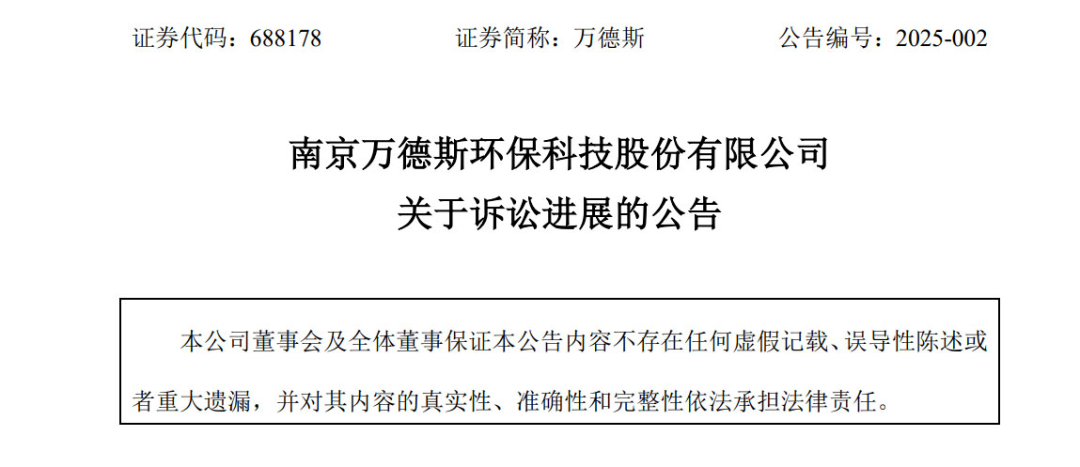 第一起,是2月5日,万德斯公告称,公司派专人多次与被告周口市淮阳区城市管理局沟通催款,但对方仍未按约履行,为维护自身合法权益,已经向法院申请强制执行。