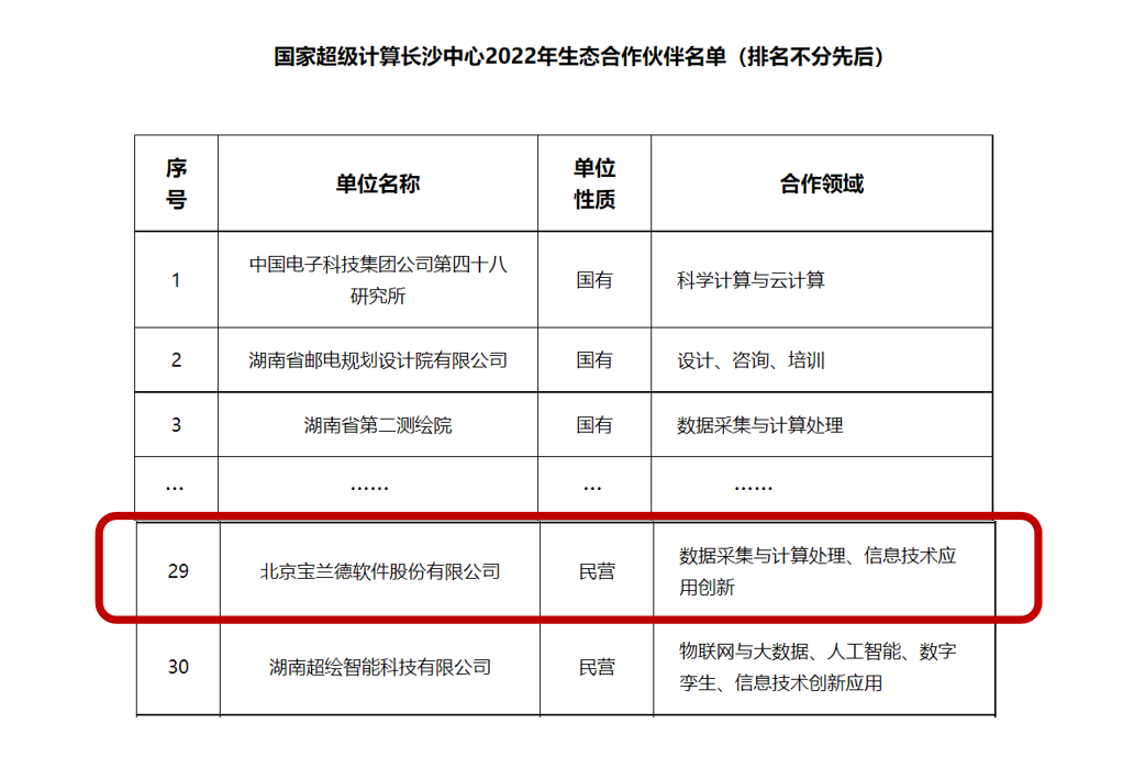 在国家超级计算长沙中心所在的湖南省,宝兰德也有许多项目落地实施。在入选国家超级计算长沙中心2022年生态合作伙伴后,宝兰德也将继续发挥自己的技术优势和经验,为助力湖南“三高四新”战略实施,完善湖南省信息产业生态体系,打造应用数据驱动经济发展的新态势贡献自己的力量。