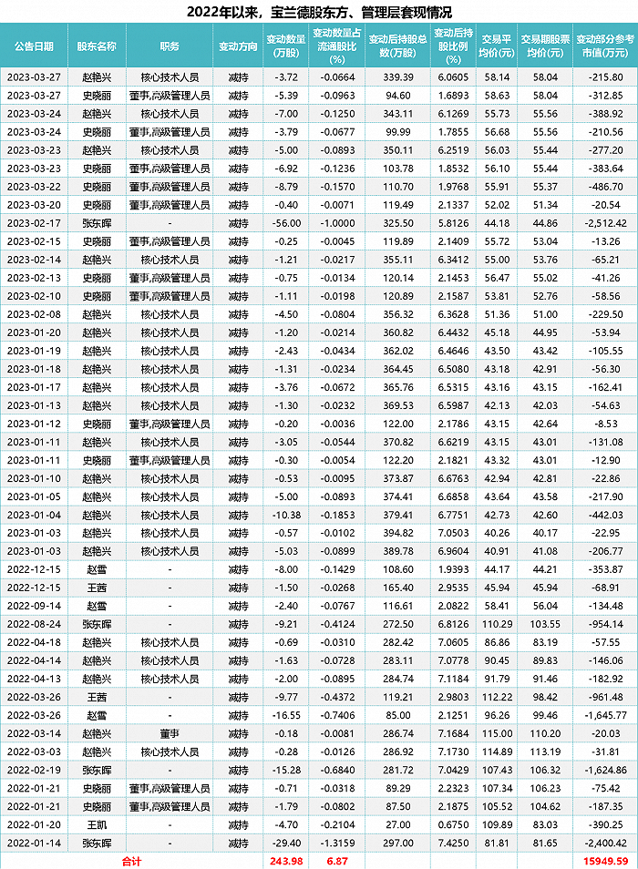 与当前57.88元的股价相比,此前,宝兰德“内部人”的减持堪称“精准”。