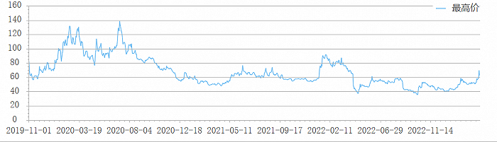 业绩下滑,公司虚股价也开始走低。公司IPO发行价格54.84元/股,上市第一天开盘价为68.77元/股,于2020年7月9日攀至高峰,达138.67元/股,此后震荡走低,最新收盘价为57.88元/股,距离最高点已跌去近60%。