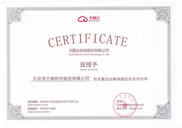 宝兰德与中国电信的合作由来已久,十余年间,双方在业务合作、云服务出海等多个层面都保持着紧密的合作关系。此次荣获“出海卓越生态伙伴”称号,将进一步深化双方的合作。未来,宝兰德将持续增加研发投入,与中国电信、天翼云在技术、联合解决方案、市场以及服务等方面继续强化合作,携手在数字经济的发展中开启新征程,为全球用户提供更优质、更高效、更可靠的云服务。