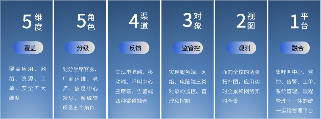 在保障校方IT环境与系统安全稳定的前提下,以城市学院资产配置管理数据库为数据基础,打通各个运维模块与呼叫中心,结合城市学院业务特色,整合全校运维服务资源,规范运维行为,确保服务质效,覆盖移动终端、PC、监控平台、电话坐席多端渠道,形成统一管理、集约高效的一体化运维支撑框架,从而保障校方IT环境安全、稳定、高效、持续运行。