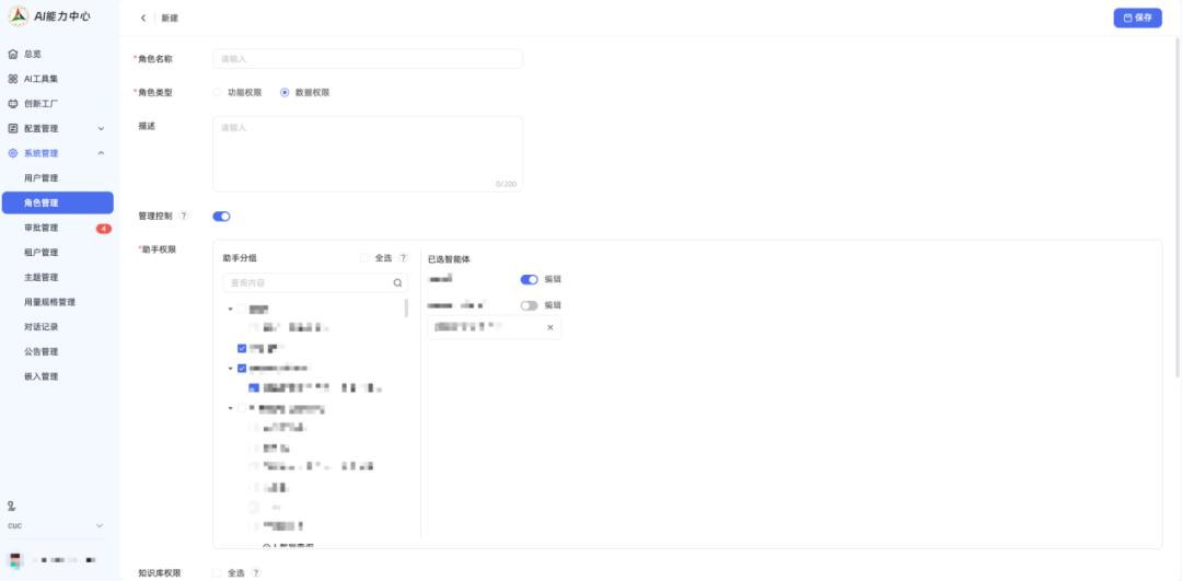 ②从用户层面控制数据权限,支持知识库、助手、对话记录等AI资源读写控制分离。