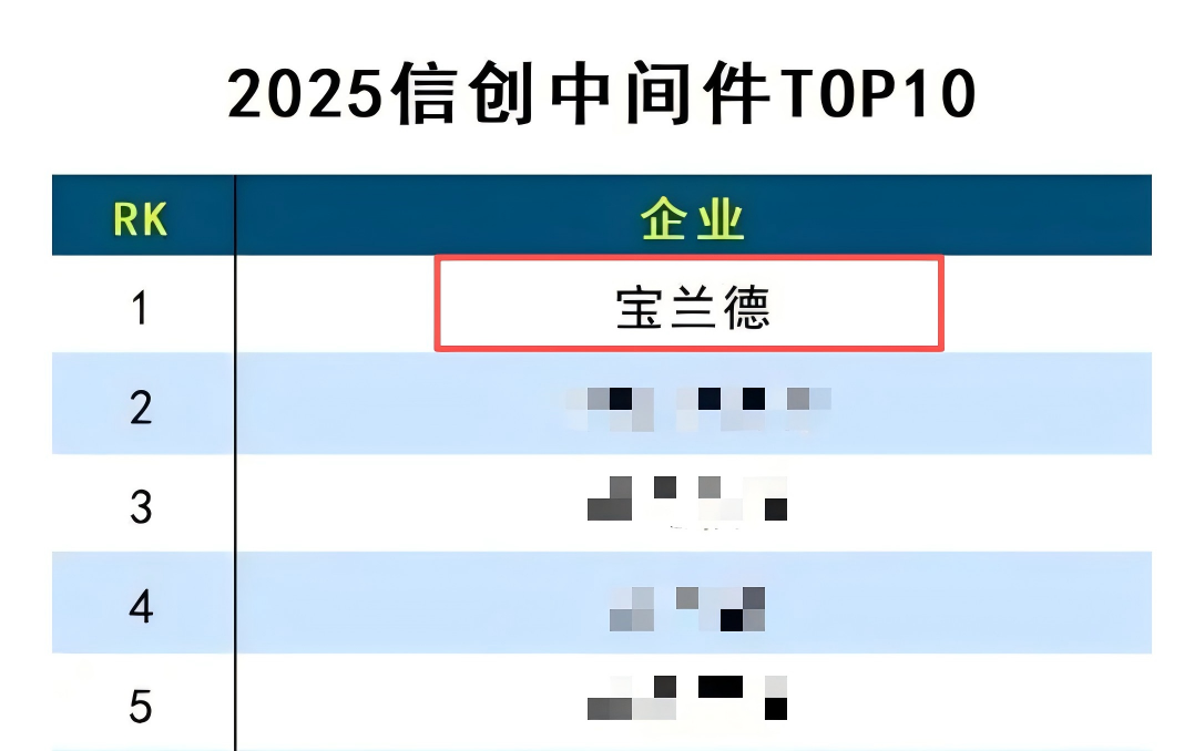 近日,业内权威调研机构“德本咨询”发布《2025信创中间件TOP10》榜单,宝兰德凭借在技术研发、产品生态、市场实践、品牌影响力等方面的综合实力,位列第一。本次排名不仅呈现了当前国产中间件的竞争格局,也凸显出在国内信息技术应用创新不断推进的背景下,国产中间件企业正迎来前所未有的发展机遇。