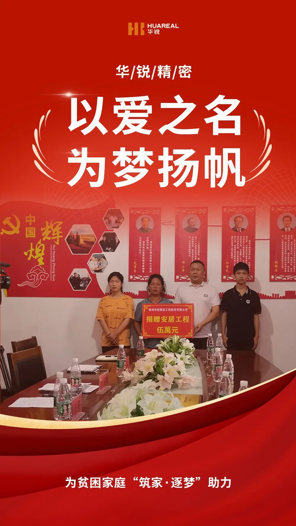 胡观秀家庭是东山村返贫监测户,家庭经济困难,居无片瓦,债台高筑。丈夫因癌症于2020年去世,两个孩子一个上高中,一个读初中,凭胡观秀打零工的微薄收入刚够全家糊口,家里建房和供两个孩子完成学业非常艰难。华锐精密董事长兼总经理肖旭凯从芦淞区总工会了解到这一情况后,当即决定支助胡观秀家庭建房,并从今年下半年起,按照1.5万元每年的标准支助胡观秀两个孩子完成初中和高中学业,等考上大学后,再根据实际情况增加助学资金,保障两个孩子顺利完成大学学业,肖总还承诺,两个孩子如果大学毕业成绩优异,公司还将优先录用。