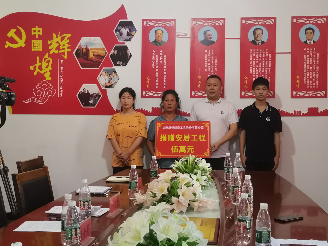 捐资助学、扶危济困,是中华民族的传统美德,是培育人才的希望工程。7月27日上午,顶着烈日酷暑,株洲华锐精密工具股份有限公司副总经理丁国峰来到白关镇东山村,代表公司参加区总工会为该村返贫监测户胡观秀家庭举办的安居工程捐建及其子女助学活动。在活动现场,公司为胡观秀家庭安居工程捐款5万元,并与胡观秀签订了对其子女的助学协议。