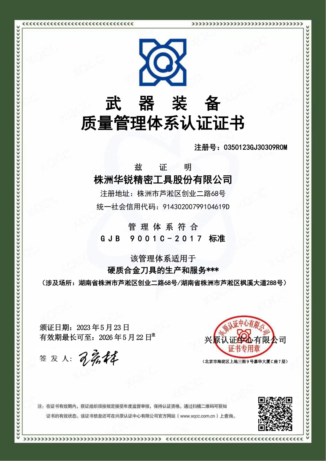 华锐精密喜获武器装备质量管理体系认证证书!