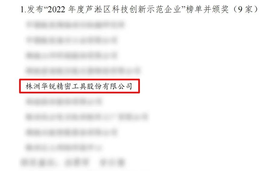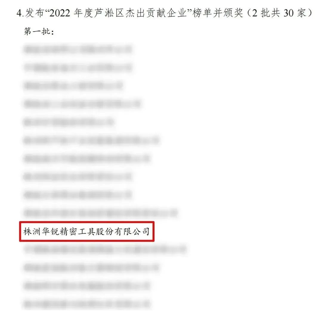 本次活动公布了“2022年度芦淞区受表彰企业”榜单,其中,“2022年度芦淞区科技创新示范企业”和“2022年度芦淞区杰出贡献企业”两个名单中,华锐精密接连获奖。