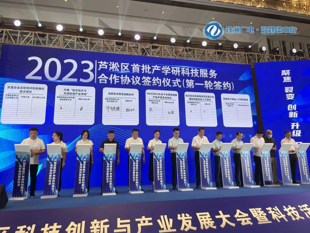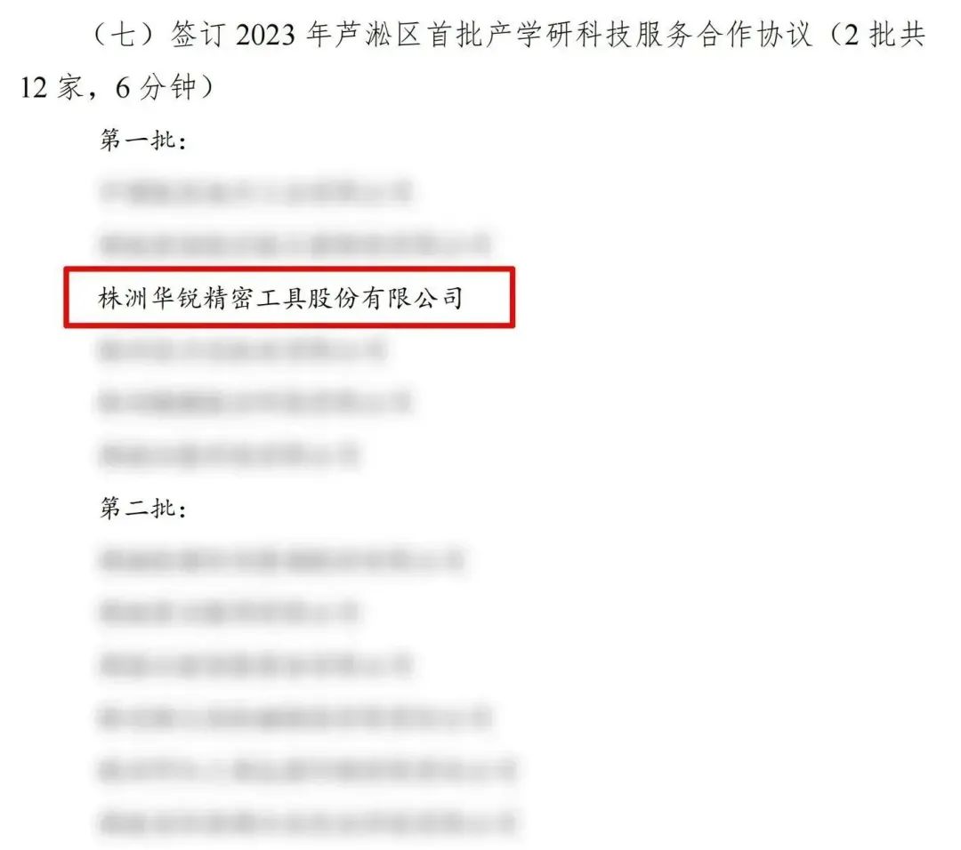 据悉,本次活动,现场还组织了12家企业签订了产学研科技服务合作协议。华锐精密也在其中,成为了2023年芦淞区首批产学研科技服务合作企业之一。