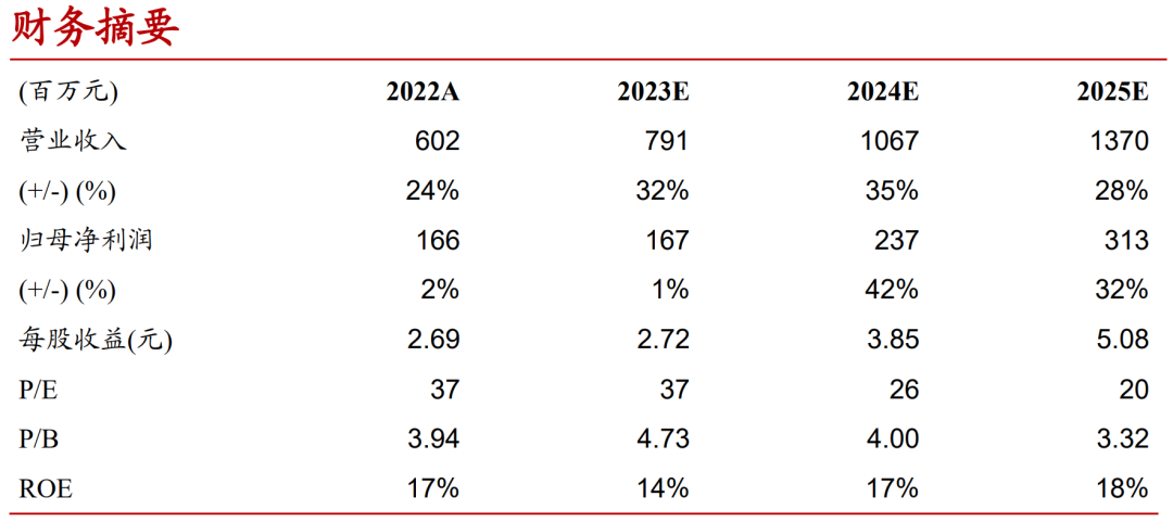 核心观点: 2023年前三季度营收同比增长约46%,归母净利润同比下滑约1% 2023年前三季度公司实现营收约5.88亿元,同比增长46.07%;归母净利润约1.06亿元,同比下滑约1.28%;扣非归母净利润约1.02亿元,同比下滑约2.07%。前三季度利润下滑主要系股权支付费用、可转债利息支出、整体刀具产能爬坡固定成本较高所致。 2023年单三季度公司实现营收约2.3亿元,同比增长104.1%,环比增长11.46%;归母净利润约4328万元,同比增长104.48%,环比增长13.12%;扣非归母净利润约4275万元,同比增长115.92%,环比增长16.57%。单三季度业绩高速增长主要系1)去年同期基数较低;2)新增刀具产能逐步释放贡献业绩。 2023年单三季度净利率环比回升0.28pct,盈利能力逐渐改善盈利能力来看,2023年前三季度公司销售毛利率、净利率分别约44.1%、17.98%,同比下滑约4.06、8.62pct。2023年单三季度销售毛利率、净利率分别为42.98%、18.78%,环比2023Q2分别下滑1.49pct、提升0.28pct,盈利能力逐渐改善。单三季度毛利率下滑主要系整体刀具产能爬坡阶段固定成本较大所致,净利率环比改善主要系费用率下降贡献。费用端来看,2023年前三季度期间费用率约21.8%,同比增长约3.8pct,其中销售、管理、研发、财务费用率分别变动+1.59、-0.73、+0.86、+2.08。财务费用率大幅提升主要系可转债支出所致。2023年单三季度期间费用率18.9%,同比下降7.92pct,环比下降2.68pct,主要系规模效应下各项费用率均有下降。产品升级+渠道建设有望促国产替代+海外拓张提速,盈利能力将进一步提升产品升级:IPO及可转债项目新增的金属陶瓷刀片、整硬刀具、数控刀体将进一步拓宽产品矩阵,2022年公司刀片产量约9335万片,销量约9005万片,分别同比增长约17%、9%。刀片单价约6.6元/片,同比增长约12%。伴随 2023 年募投项目逐渐投产,公司数控刀具盈利能力有望持续提升。渠道建设:1)直销经销渠道:2023年上半年经销营收占比约87%,伴随直销团队的建设力度与直销客户的开发力度提升,未来直销比例有望提升。2)境外销售:2023年上半年境外销售约1610万元,同比增长约43%,占比总营收约4.5%,同比提升约0.6pct。当前部分产品品质已达到甚至超过日韩厂商,性价比优势下有望使公司产品国产替代、海外拓张提速。盈利预测与估值预计2023-2025年公司归母净利润分别为1.7、2.4、3.1亿元,同比增长1%、42%、32%,PE为37、26、20X,维持“买入”评级。风险提示 1)下游应用需求不及预期;2)扩产进度不及预期。 |