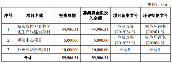 华锐精密最终募集资金比原计划少2.40亿元。华锐精密于2021年2月3日披露的招股说明书显示,公司拟募集资金6.00亿元,其中,4.50亿元用于精密数控刀具数字化生产线建设项目,5000.00万元用于研发中心项目,1.00亿元补充流动资金项目。
