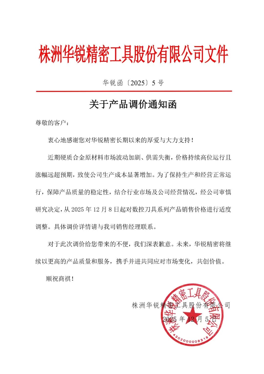 未来,华锐精密将继续深耕技术研发,提升生产效率,尽最大努力控制成本,持续为您提供高品质的数控刀具产品与专业的服务。再次感谢您的理解、信任与支持!