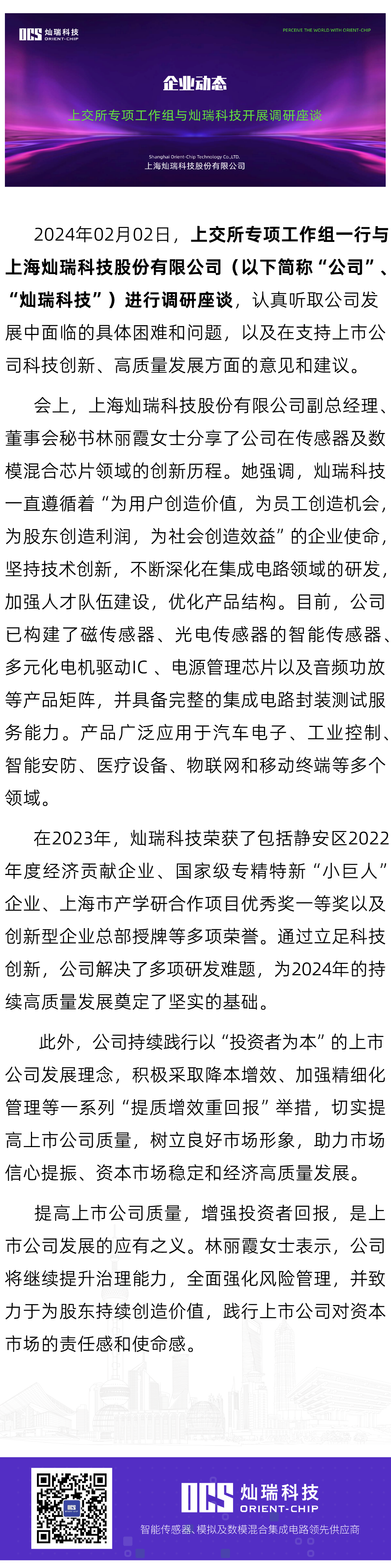 上交所专项工作组与灿瑞科技开展调研座谈