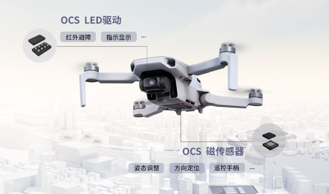 灿瑞科技地磁传感器芯片可用于无人机导航模块,提供导航方向,配合完成姿态调整控制;3D感应线性传感器芯片可用于无人机遥控手柄,提供遥控手柄的位置感测,从而实现无人机的操控。
