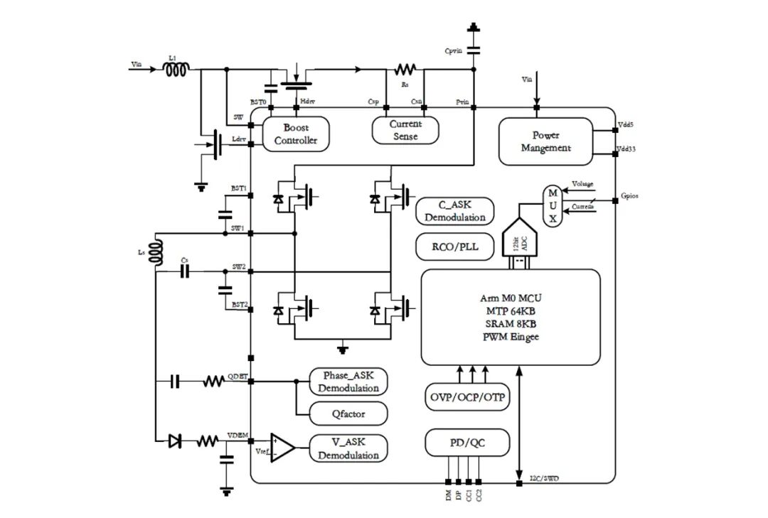 2.支持低电池电压下Q值检测,在充电宝应用上获得更低的待机功耗。