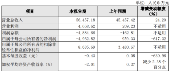 灿瑞科技(688061.SH)近日披露的2024年度业绩快报公告显示,公司2024年实现营业总收入56457.18万元,同比增长24.20%;归属于母公司所有者的净利润-4962.82万元,上年同期为959.33万元;归属于母公司所有者的扣除非经常性损益的净利润-8685.69万元,上年同期为-3480.67万元。