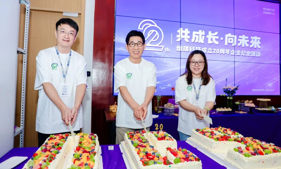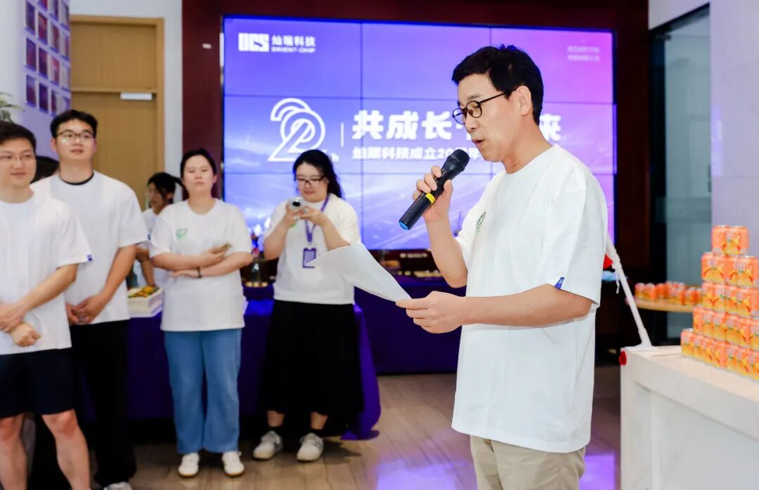 庆典在热烈掌声中拉开帷幕。董事长以“从上海延长路启航的20年”开篇,回顾发展历程:“二十年来,我们突破技术封锁、攻克市场难关,如今企业拥有近300项专利,构建起磁传感器、电源管理芯片等多品类芯片矩阵,具备全流程封装测试能力,产品覆盖汽车电子、工业控制等主流场景,成为行业领先供应商。这份成绩,离不开全体灿瑞人的拼搏与合作伙伴的支持。”