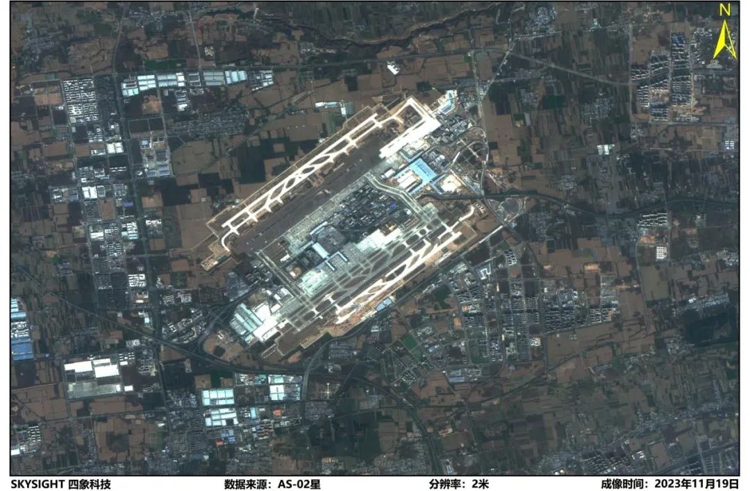 ▲图1北京大兴国际机场航天宏图一号遥感影像图