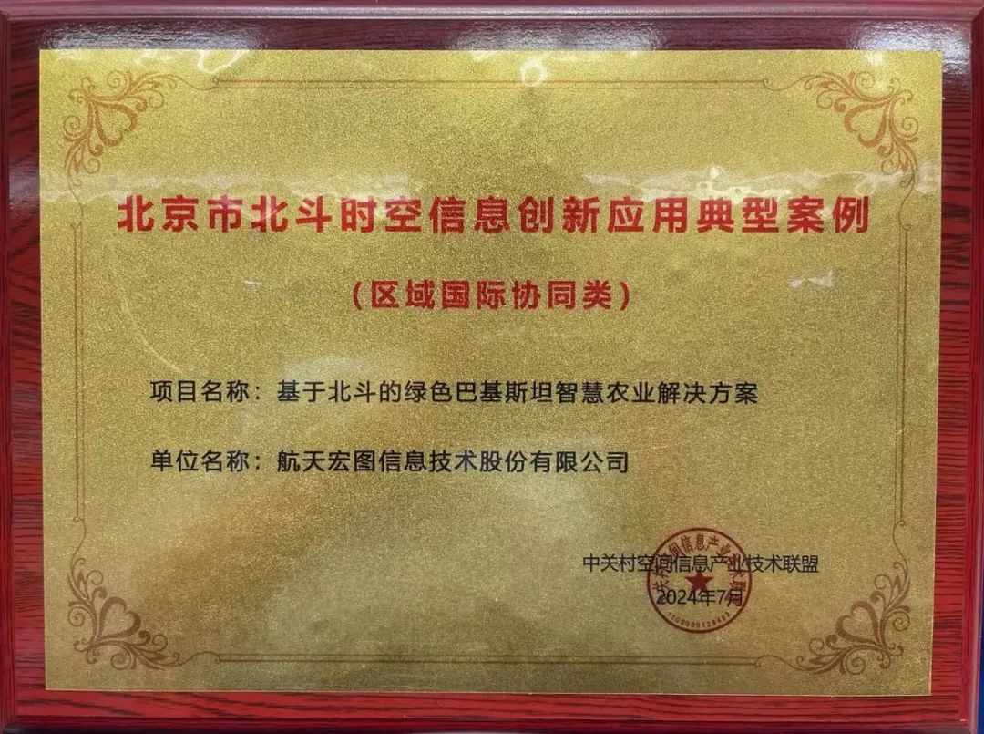 7月3日,由中关村空间信息产业技术联盟承办的2024全球数字经济大会“北斗时空信息构筑新型数字基础设施论坛”,在成果发布环节发布了一批北京市北斗创新应用场景与北京市北斗时空信息创新典型案例。经过论坛组委会征集、专家评选,航天宏图的“基于北斗的绿色巴基斯坦智慧农业解决方案”成功入选并获得荣誉奖牌。