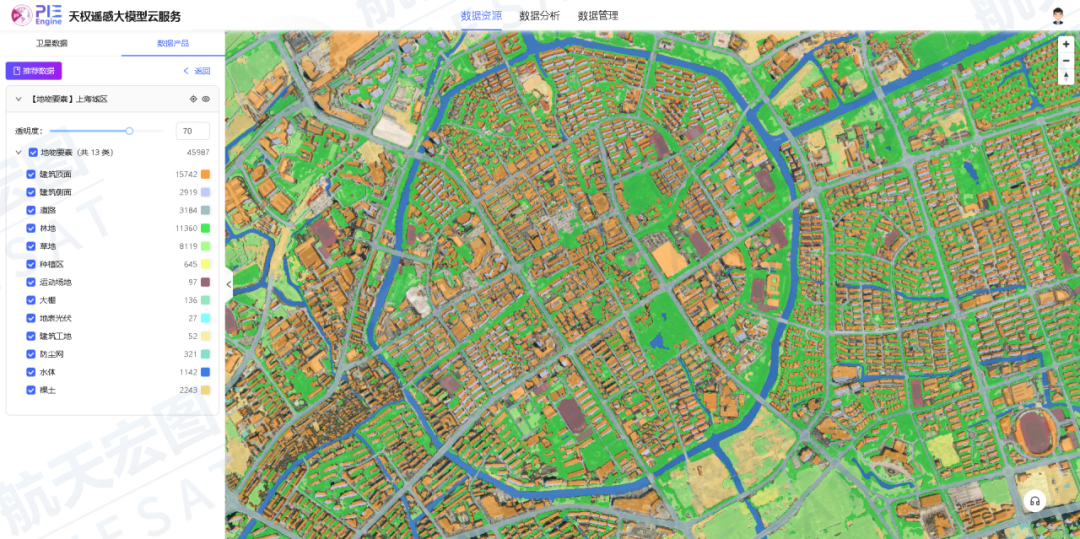 依托航天宏图国际领先的女娲星座等多模态卫星影像资源,以及视觉大模型、人工智能内容生成等前沿技术,公司研发PIE-Engine天权大模型遥感云服务产品,可提供遥感影像智能解译、智能增强和三维重建服务。产品深耕遥感智能解译领域行业应用,旨在解决遥感数据解译的复杂性和多样性挑战,功能涵盖地物要素智能解译大模型、特定场景目标检测、道路提取、SAR智能提取、变化检测、影像超分、去雾以及三维快速构建等技术,为用户提供高效、精准以及高度泛化的智能遥感云平台服务,广泛应用于自然资源、应急减灾、生态环保、测绘导航、数字农村、金融能源、智慧城市等领域。
