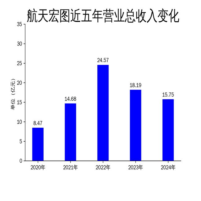 2024年,航天宏图的营业总收入为15.75亿元,较2023年的18.19亿元下降了13.39%。其中,空间基础设施规划与建设收入为2.93亿元,PIE+行业收入为12.7亿元,云服务产品线收入仅为1216万元。尽管公司在商业航天、低空经济等领域看到了发展机遇,但整体营收的下滑表明其市场拓展和业务增长面临较大挑战。