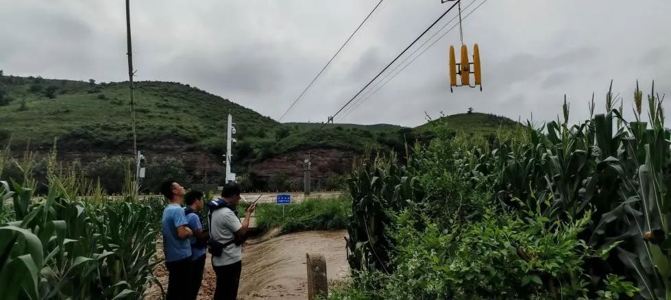 航天宏图防汛一线人员首战东房子监测断面,面对原有设备失效的紧急情况,项目组采用无人机航测技术,快速传回第一组关键水情数据,为防汛指挥赢得宝贵时间。