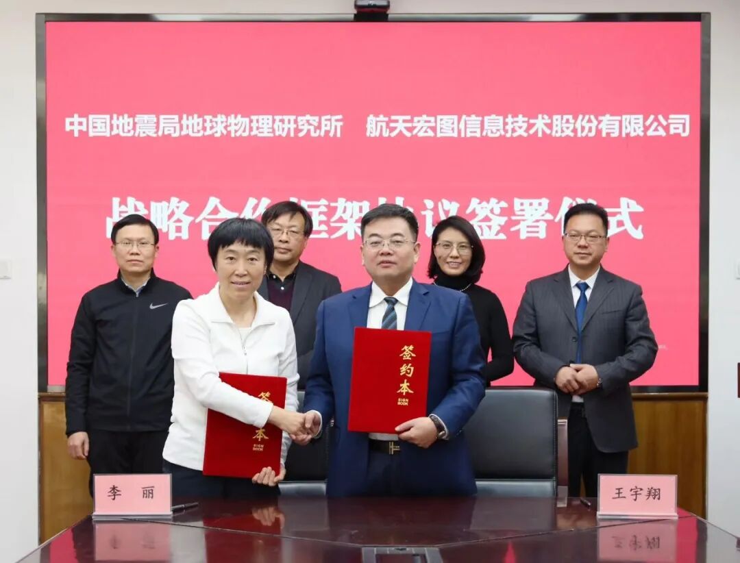 2025年12月5日, 中国地震局地球物理研究所 (简称:地球所)与 航天宏图 信息技术股份有限公司(简称: 航天宏图 )在北京签订战略合作协议,双方将在卫星星座、数据共享、人才培养等多个关键领域展开深度合作,携手推动防震减灾监测技术的创新发展。地球所李丽所长、 航天宏图 王宇翔董事长出席了签约仪式。