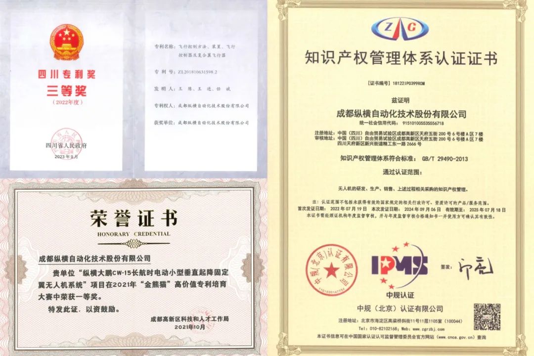 纵横股份获得的知识产权荣誉证书/图