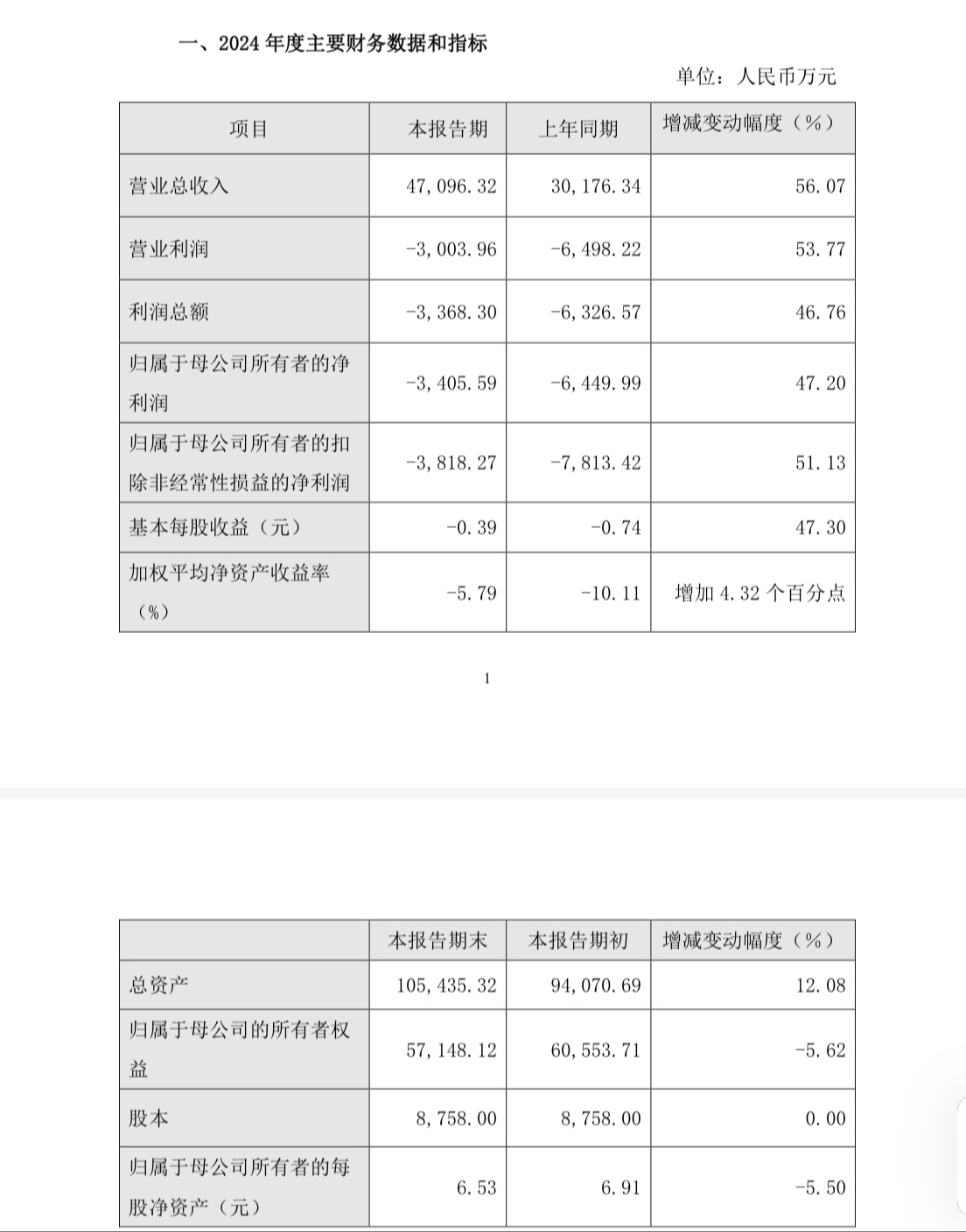 2月27日晚,纵横股份发布2024年业绩快报,报告期内,公司实现营业收入 4.71亿元,同比增加56.07%;归母净利润-3405.59万元,同比减亏3044.40万元;扣非归母净利润-3818.27万元,同比减亏3995.15万元。报告期末,公司总资产10.54亿元,较报告期初增加12.08%;归属于母公司的所有者权益 5.71亿元,较报告期初减少5.62%。