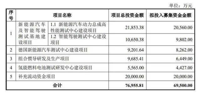 拟募资 6.95 亿元,将用于新能源汽车及智能驾驶测试基地建设等项目