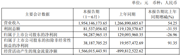 2025年上半年,拓荆科技营业收入为19.54亿元,同比增长54.25%;归属于上市公司股东的净利润0.94亿元,同比下降26.96%;经营活动产生的现金流量净额15.66亿元,上年同期为-9.00亿元。