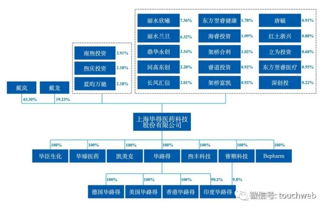 IPO前,戴岚直接持有毕得医药43.30%股份,戴龙直接持有毕得医药19.23%股份。戴岚、戴龙系姐弟关系。