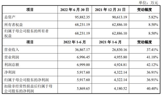 2022年1-6月,毕得医药的营业收入为36,867.17万元,同比增长37.41%;实现净利润/归属于母公司股东的净利润5,917.60万元,同比增长36.91%;扣除非经常性损益后归属于母公司股东的净利润5,869.65万元,同比增长40.40%。