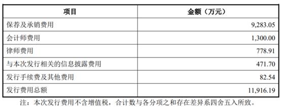 毕得医药本次发行费用总额为11,916.19万元,其中海通证券股份有限公司获得承销及保荐费用9,283.05万元。