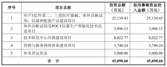 安旭生物最终募集资金净额比原计划多5.97亿元。安旭生物于11月12日披露的招股书显示,公司拟募集资金4.59亿元,分别用于“年产3亿件第二、三类医疗器械、体外诊断试剂、仪器和配套产品建设项目”、“体外诊断试剂及POCT仪器生产智能化技术改造项目”、“技术研发中心升级建设项目”、“营销与服务网络体系建设项目”、“补充营运资金”。