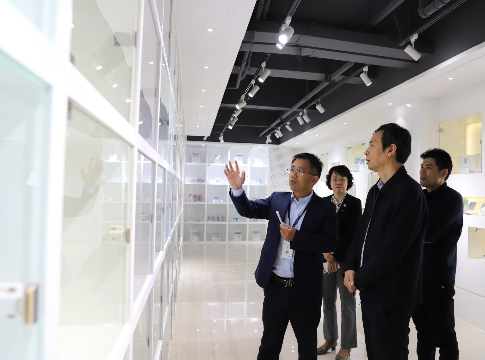 李硕副司长一行首先参观了公司的展厅,了解公司主要产品、使用场景及市场现状,以及安旭生物全产品系列的概况。