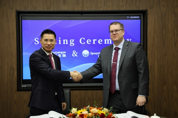美国斯普瑞公司是全球领先的工业用喷雾喷嘴和自动喷雾系统的专业制造商,成立于1937年,在全球拥有12个生产基地。诺泰生物董事长童梓权和斯普瑞公司首席运营官Keith Cronce代表双方公司签约。