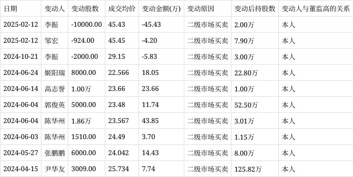 上交所公开信息显示,2月12日,龙软科技核心技术人员李振在二级市场买卖公司股票,减持股数1.00万股,成交均价45.43元,变动金额45.43万元,变动后持股数为2.00万股。