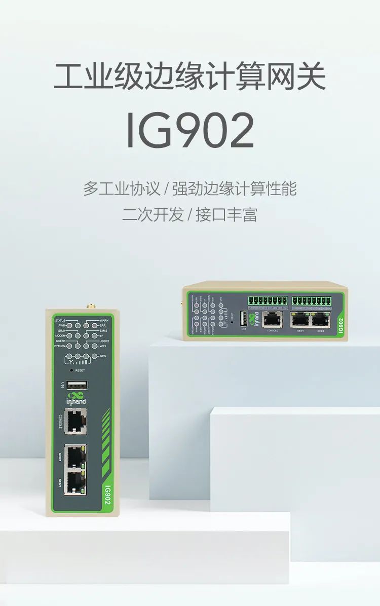 IG902是映翰通面向IoT领域,助力IoT行业实现数字化转型而推出的高性能边缘计算网关,它拥有强劲的边缘计算能力,能够在边缘节点处进行复杂业务数据的处理、分析、存储和计算,使用户真正体会到边缘计算所带来的实时性、经济性、私密性和灵活性,为企业数字化转型赋能。