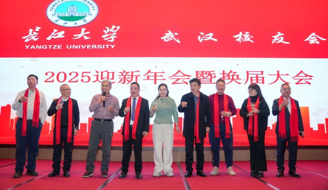 长大遇知音,校地同筑梦。2024年12月28日,长江大学武汉校友会换届大会暨2025迎新年会在武汉市蔡甸区后官湖假日酒店隆重举行,学校党委书记王建平、副书记敖廷华,党委常委、党委组织部部长、党委统战部部长李应军,武汉市蔡甸区常务副区长周强、副区长雷静,蔡甸区商务局局长张峥、文旅局副局长李艳华和长江大学校友企业家联谊会及各兄弟校友会代表、兄弟高校湖北校友会代表,以及武汉各界校友200余人欢聚一堂,畅叙情谊,共商发展之计。