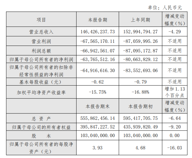 2021年至2024年,公司营业收入分别为1.57亿元、1.44亿元、1.49亿元、1.53亿元,归属于上市公司股东的净利润分别为-4561.13万元、-7910.48万元、-6793.60万元、-8,066.38万元,归属于上市公司股东的扣除非经常性损益的净利润分别为-5070.50万元、-8232.22万元、-6980.05万元、-8,355.27万元,经营活动产生的现金流量净额为-6506.92万元、-5657.16万元、-2988.14万元、-2,588.97万元。