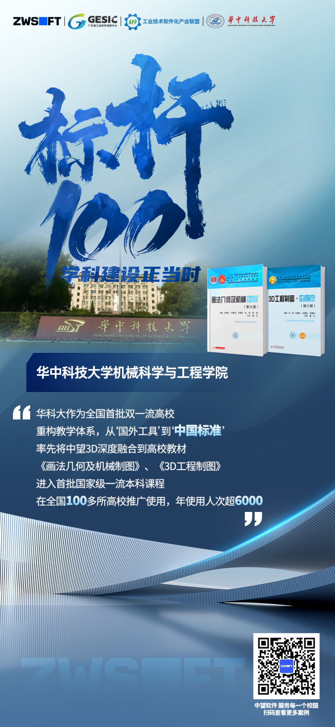 【编者按】为助力教育强国建设,构建行业多方共赢的生态合作体系,由 中望软件 牵头与国家工业软件行业产教融合共同体、工业技术软件化产业联盟、广东省工业软件创新中心、工业产品设计与仿真软件创新联盟等单位携手,联合推出“标杆100”案例采集栏目,邀请100位教育行业标杆先行者,分享在培养国家战略人才过程中的实践和经验。本期走进 华中科技大学 机械科学与工程学院图学教育研究与发展中心,以下根据国家教材建设重点研究基地(高等学校智能制造与机器人教材研究)专职研究员、教育部高等学校工程图学课程教学指导分委员会中南地区工作委员会副主任、三级教授阮春红, 中国图学学会 图学教学名师(青年组)、湖北省图学学会理事长、校公共基础教学实验中心主任张俐教授,湖北省图学学会秘书长、工程制图课程负责人罗年猛副教授的教育实践经验整理。