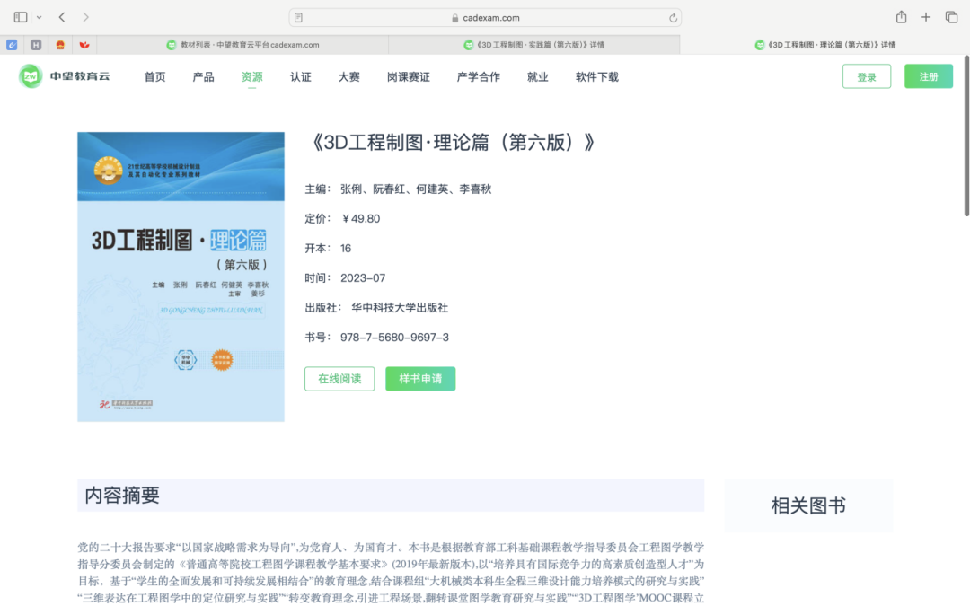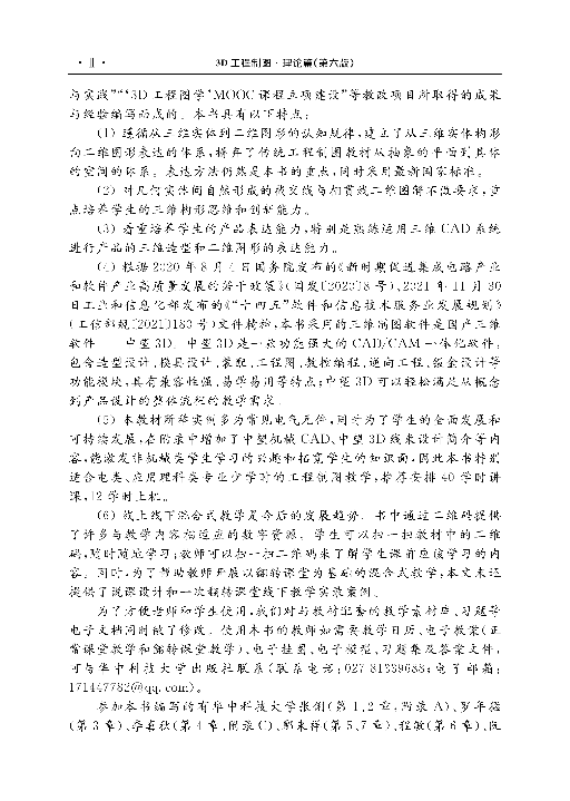 其中,张俐、阮春红等多位教授编写的《3D工程图学?理论篇》教材目录中明确了国产 中望软件 的相关内容: